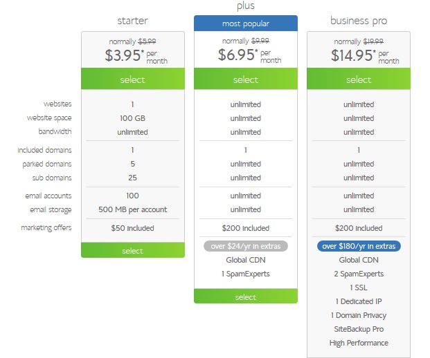 BlueHost offers a pretty simple installation process and an easy-to-understand platform. Along with different levels of service to fit your needs, they offer a money-back guarantee if you’re not happy. The standard pricing is $5.99 per month but click through to one of the links here and you’ll get the special offer of $3.95 per month for 36-months plus a free domain name and unlimited email accounts.