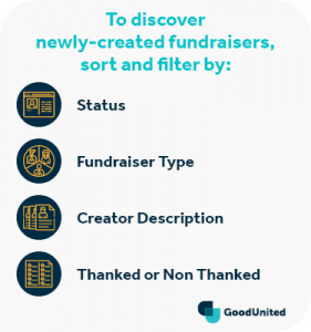 Luckily, Facebook has created intuitive tools to help your nonprofit discover newly created fundraisers. According to this GoodUnited nonprofit guide to Facebook fundraisers, the “Sort & Filter” tool allows nonprofits to navigate to the “Fundraising” portion of their Facebook page and view the fundraisers that have been most recently created and not yet thanked personally.